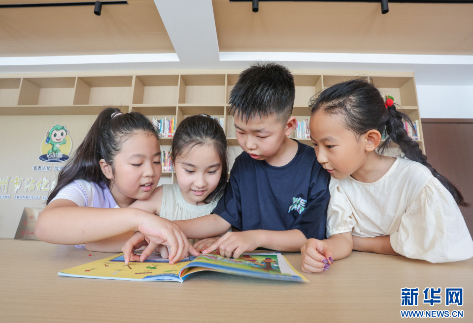 在利国社区阅读室,孩子们在阅读趣味读物。新华网发(卞俊涵 摄)